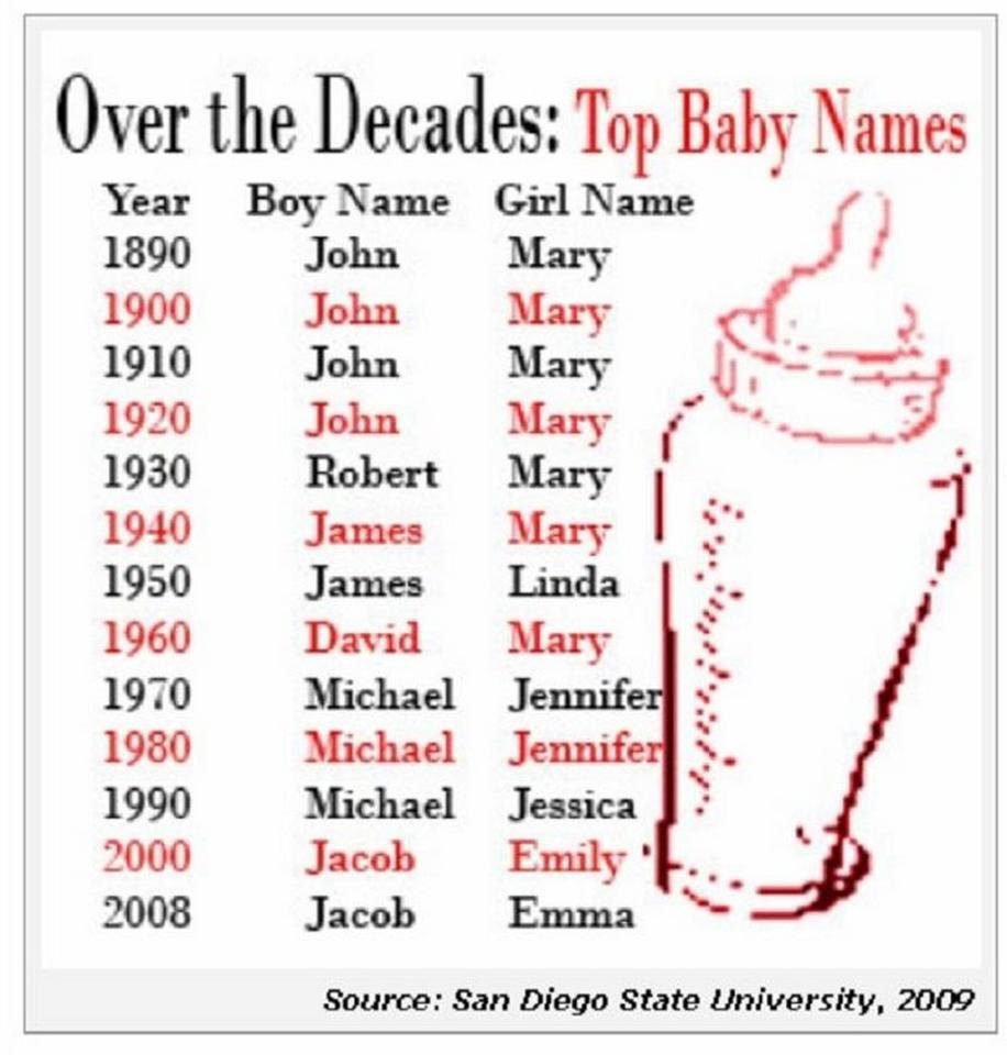 - Top 100 Baby Names Change from 2007 Change from 2007. Social Security baby names popularity lists because our members are naming future babies. Emma takes the top spot on the Social Security Administrations newly released 2008 list of.