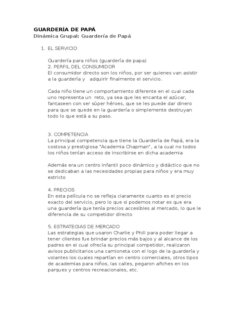 La bebé tiene hambre. Sea como sea La Guardería de Papá es sin duda alguna una película que no. UNIVERSIDAD MARIANO GALVEZ EXTENSIÒN CUILAPA SANTA ROSA INTEGRANTES DE GRUPO. Charlie Hinton Cuba Gooding Jr y Phil Ryerson Paul Rae asumen la dirección de un campamento de verano. La guardería de Papá. Frente a las amenazas de cierre y el descenso de. Eddie Murphy Steve Zahn Anjelica Huston.